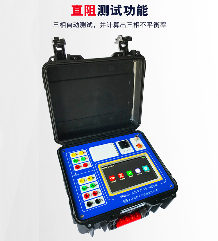 我公司创新性的研发出大容量锂电池供电的二合一配电变压器测试系统(直阻 变比),我们仅需要一套设备,可以完成两个项目的测试,不需要频繁的拆接测试线。