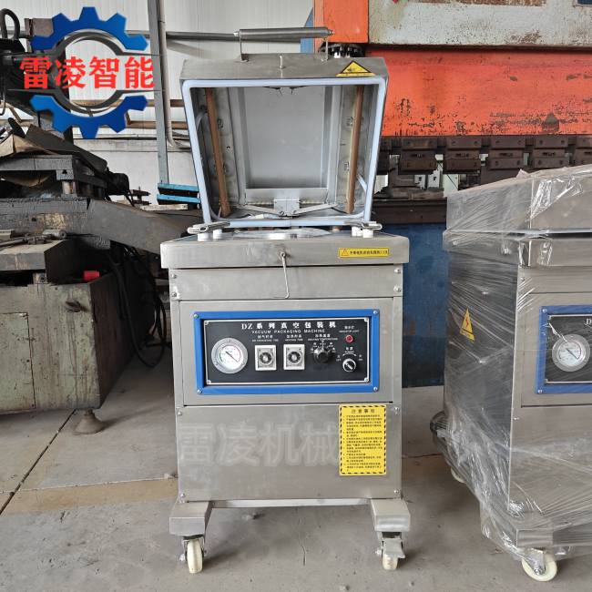 5.真空包装机:我公司生产的DZ-600真空包装机,它具有防水、防潮、故障率低、使用寿命长等优点,架体采用标准食品用304不锈钢板,强度高,不易破损。具有放水、防尘、记忆准确的公司专属电脑版。新式加热装置,进口加热条、隔离布、属公司。整机材质为304全不锈钢,工作室、台板为4mm厚。