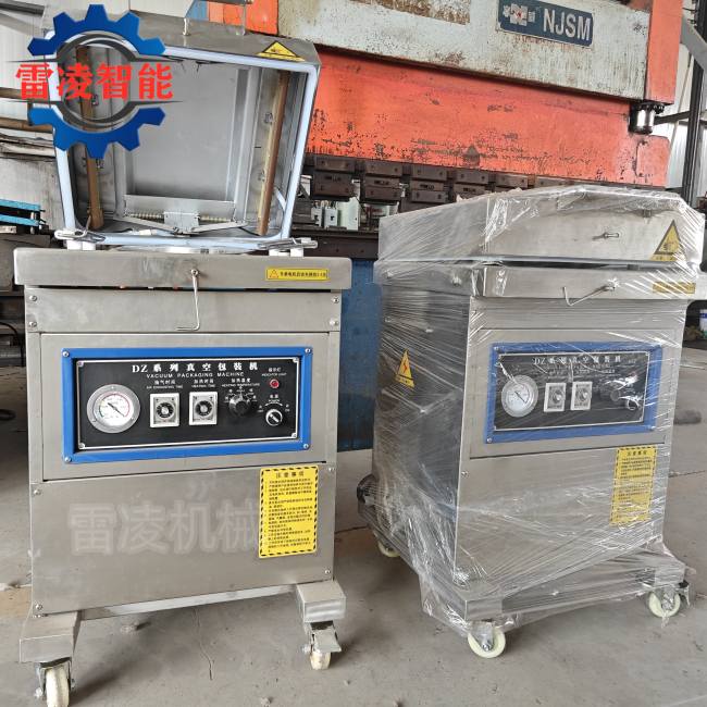 5.真空包装机:真空包装机能够自动抽出包装袋内的空气,达到预定真空度后完成封口工序,也可再充入氮气或其它混合气体,然后完成封口工序,常被用于食品行业,经过真空包装以后。食品能够抗氧化,从而达到长期保存的目的。