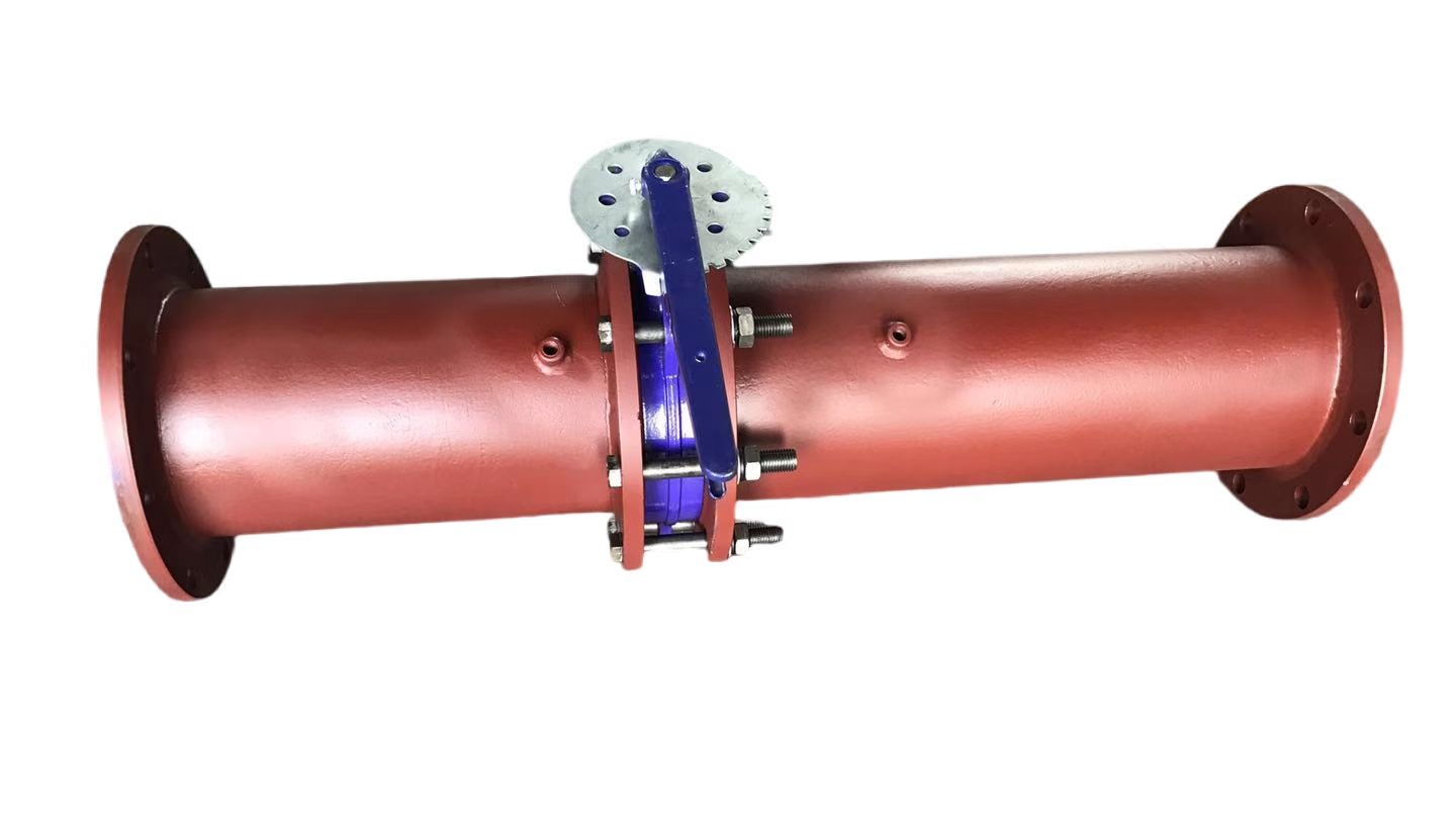 煤矿瓦斯广泛使用的孔板流量计多为固定孔板流量计,该装置设置在抽放主管、分管和支管上,当流体经管道内的节流装置会产生一定的管道阻力,随着管线的延伸,特别是分支管线的增加,造成抽放管线阻力增大的问题,为保障抽放系统末端抽放负压,提高抽放效果,本厂根据市场需求研发旋转式孔板流量计,用以解决抽放管线阻力问题,旋转式孔板流量计做到了将测量孔板与旁通管路二合一,即能使用孔板测量流量,又能使介质完全无阻挡通过管路,减小管线阻力,起到旁通的作用。本设计结构紧凑、操作简单、启闭灵活、使用安装方便,也解决了行道狭小安装极不方便的问题,可根据不同管径匹配不同管径的流量计。