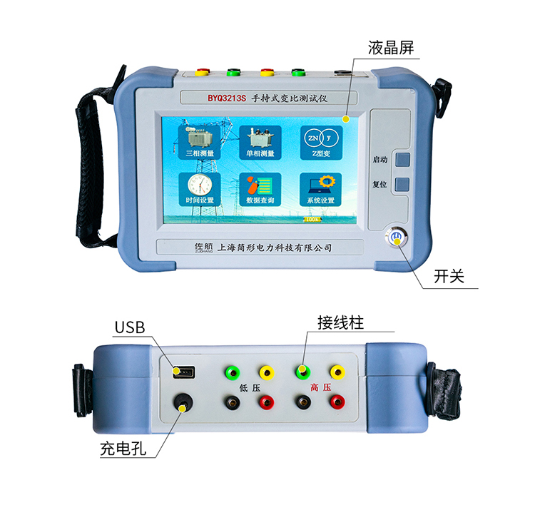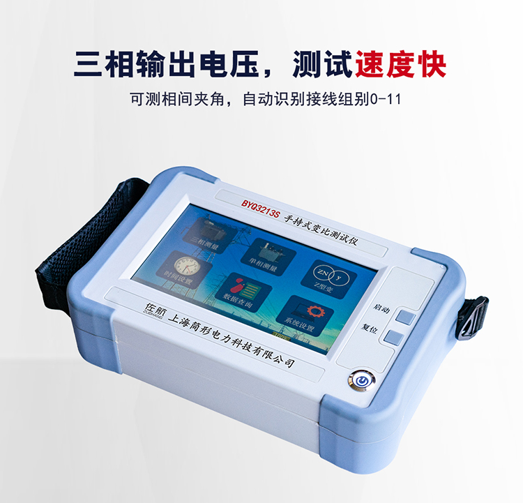 在电力变压器的半成品、成品生产过程中,新安装的变压器投入运行之前及根据国家电力部的预防性试验规程,要求对运行的变压器进行匝数比或电压比测试,可以检查变压器匝数比的正确性、分接开关的状况、变压器是否匝间短路、变压器是否可以并列运行。传统的变比电桥读数不直观,要进行换算,只能逐相进行测量。佐航BYQ3213S手持变压器变比测试仪克服了传统变比电桥测试的缺点,操作简便直观,采用三相精密逆变电源,测试快,准确度高。