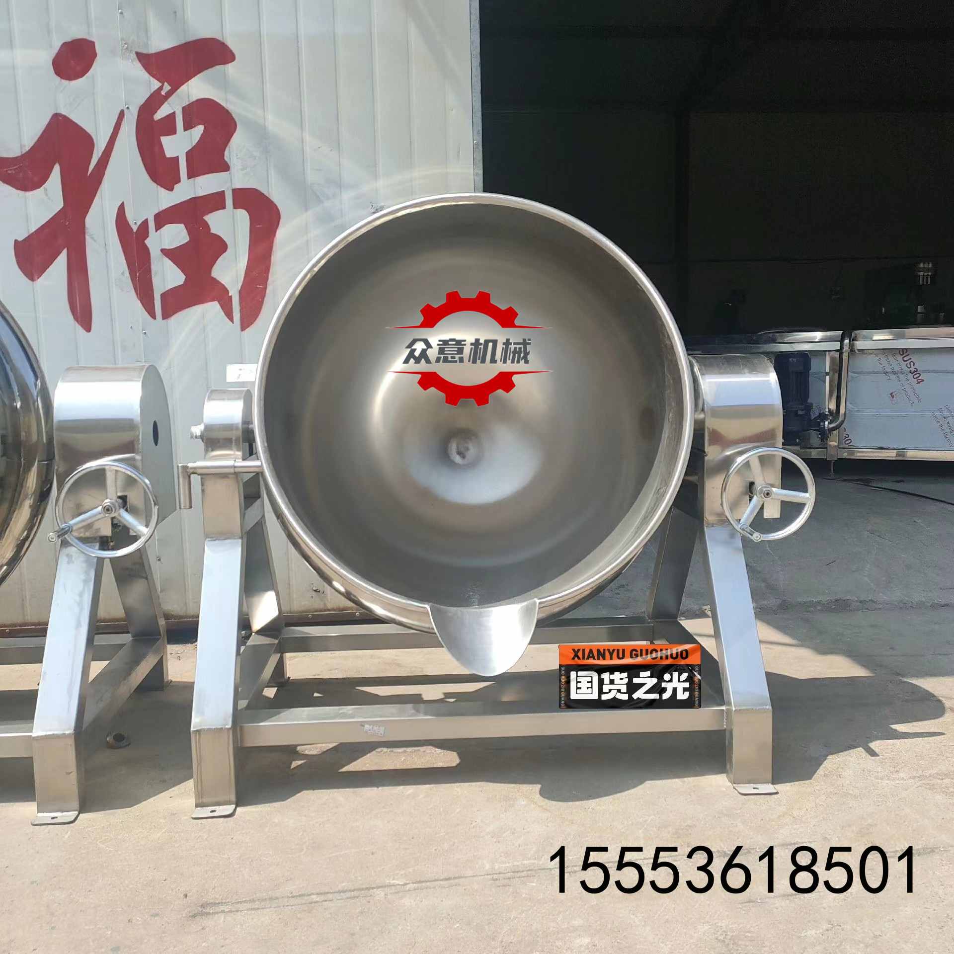 3、锅体材质:①内锅体不锈钢(SUS304),夹套、支架碳钢(Q235-B)外涂防锈漆;②内外全不锈钢。