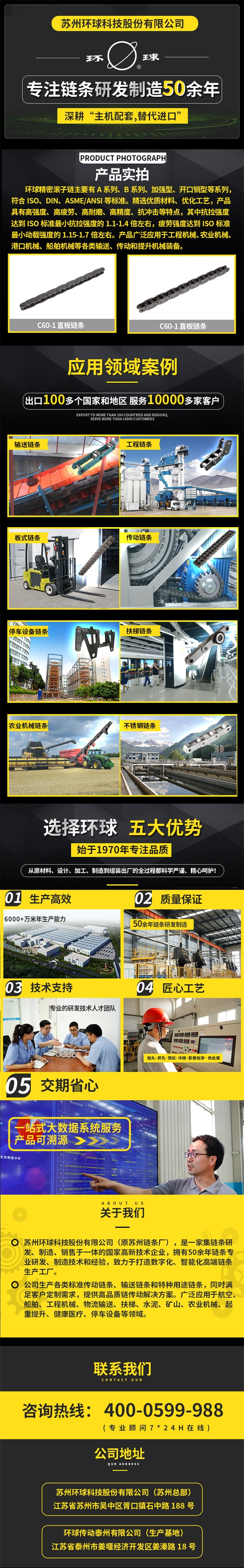 C60-1链条 C系列短节距精密滚子链 环球链条