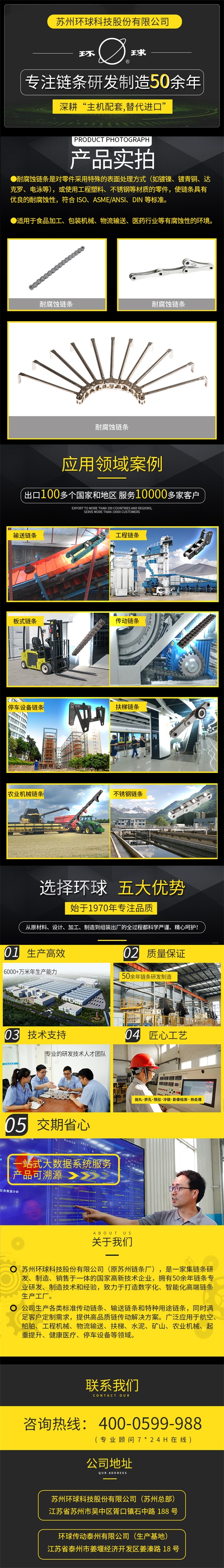 环球传动(原苏州农机配件厂)始建于1970年,是一家集链条、轴承和智能系统研发、制造、销售于一体的国家高新技术企业,拥有国家认定企业技术中心,是中国链传动行业重点骨干企业和专精特示范企业。拥有50年链条专业研发、制造技术和生产经验,致力于打造数字化、智能化的高端链条生产基地。