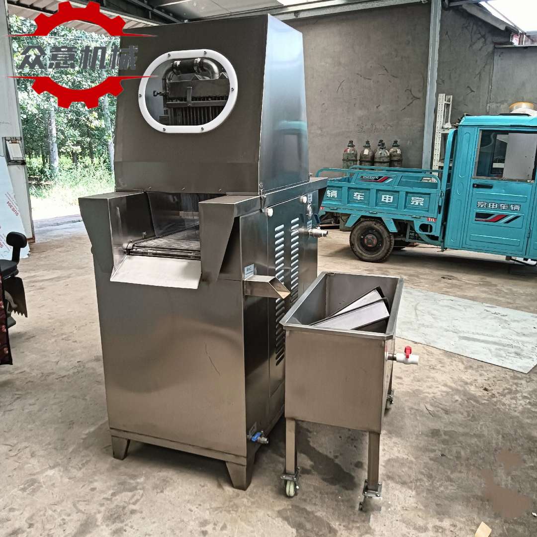 2、当链带转动时针头将配好的辅料往原料肉里挤压,使肉体蛋白质分解成水溶性蛋白,易被人体吸收。同时能使添加料(淀粉等)与肉体蛋白质互为溶合,以达到肉质变嫩、口感好、成品出率高的目的。链带的转停运行均有按钮或变频器自动控制,如配置变频器可根据实际工艺需要调节设定链带的运行速度。