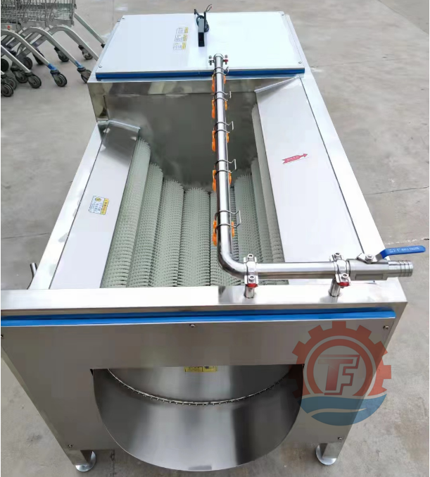 毛辊清洗机又称毛辊刷清洗机、毛辊喷淋清洗机、去皮清洗机。主要用于贝壳类、根茎类果蔬的清洗去杂、土豆红薯去皮、药材深加工等,工作原理是利用毛辊的转动,物料间的相互摩擦,来去掉附着在被清洗物上的泥土、杂质,用毛辊丝较硬的毛辊可直接将土豆、芋头等需要去皮工艺的物料进行去皮,利用喷淋式水流冲击清洗,清除杂质。