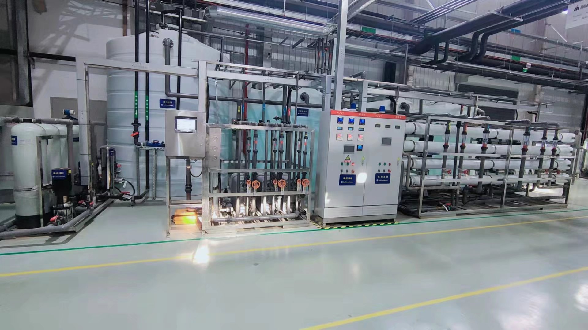 2、超滤系统、反渗透系统的低压管路部分到EDI装置进水均采用UPVC管路,反渗透高压管路则采用承压好的不锈钢管。在EDI出水至抛光混床前采用Clean-PVC材质,抛光混床后至回流管道采用PVDF材质。