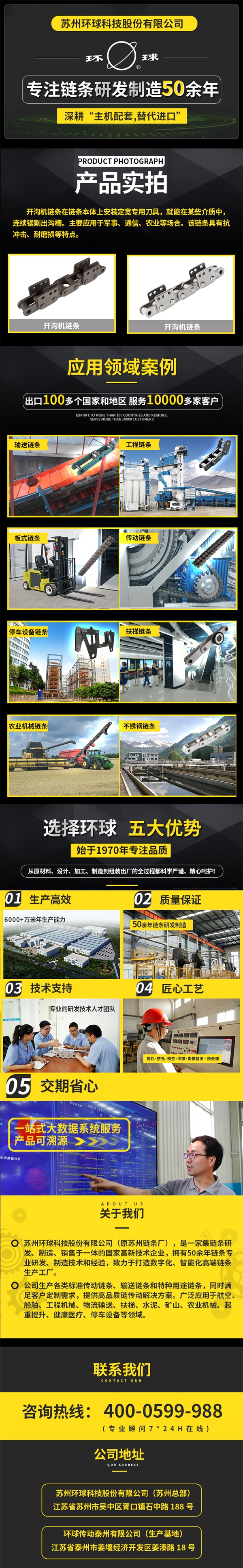 环球传动(原苏州农机配件厂)始建于1970年,是一家集链条、轴承和智能系统研发、制造、销售于一体的国家高新技术企业,拥有国家认定企业技术中心,是中国链传动行业重点骨干企业和专精特示范企业。拥有50年链条专业研发、制造技术和生产经验,致力于打造数字化、智能化的高端链条生产基地。