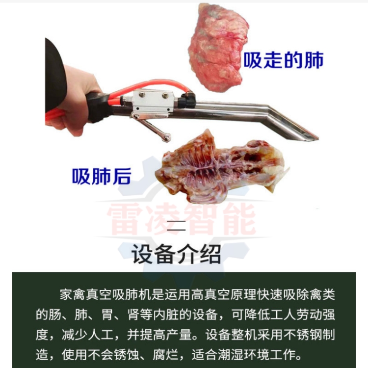 该机器内部配备了强力的真空泵和精密的吸嘴,能够在短时间内迅速吸取禽类肺部的残余物。同时,其独特的吸力调节系统,可以根据不同禽类的大小和肺部结构,自动调节吸力大小,确保每只禽类都能得到恰到好处的处理。