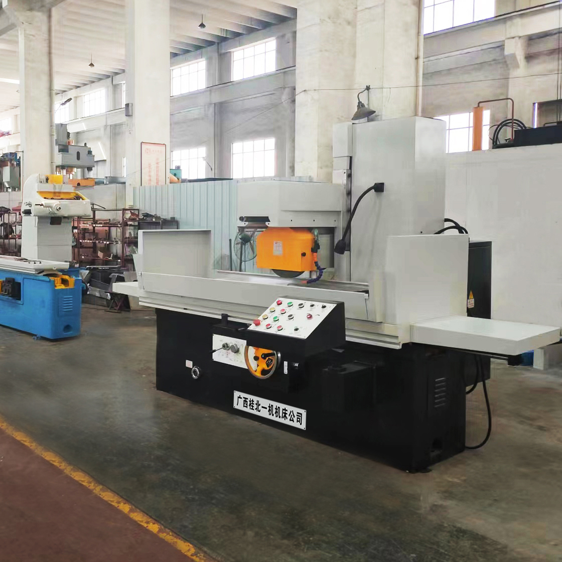 桂北磨床M7163机型磨削特点 7163平面磨床厂家自动下刀带数显,桂北一机M7163平面磨床的特点:1.分粗磨、细磨两阶段加工,配合可选择九次的火花消除设定,确保桂北一机M7163平面磨床精度提高工作效率。2.桂北一机M7163平面磨床的主轴现在位置,随时在荧幕上显示,也可在任意位置做零点设定,有桂北一机M7163平面磨床如光学尺的功能,参数键具背隙补正,导程误差补正等多功能之参数设定。3.桂北一机M7163平面磨床有零点复归机能,受桂北一机M7163平面磨床价格影响当主轴移动后,只要按下零点复归键即可回到零点。4.桂北一机M7163平面磨床主轴上下运力有六机种机:速进,缓进,定寸进,微进,电子手轮进给,全自动