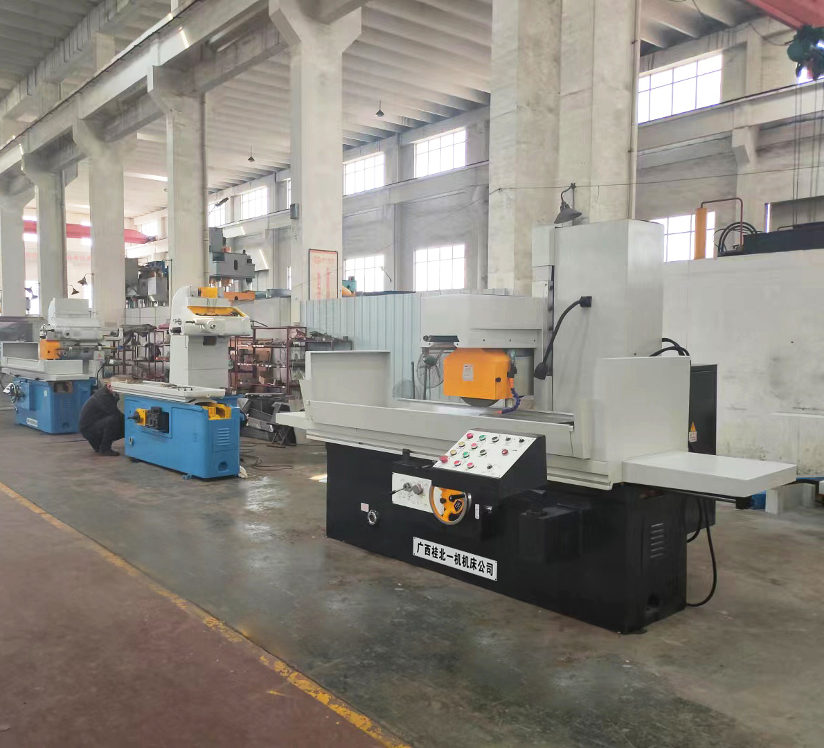 桂北M7160磨床厂家同款 7160平面磨床价格快速升降砂轮修整器,桂北一机M7160平面磨床直线运动的反向误差,也叫失动量,它包括桂北一机M7160平面磨床该坐标轴进给传动链上驱动部位(如伺服电动机、伺趿液压马达和步进电动机等)的反向死区,受桂北一机M7160平面磨床价格影响各机械运动传动副的反向间隙和弹性变形等误差的综合反映。桂北一机M7160平面磨床误差越大,则桂北一机M7160平面磨床的定位精度和重复定位精度也越低。桂北一机M7160平面磨床反向误差的检测方法是在所测坐标轴的行程内,受桂北一机M7160平面磨床价格影响预先向正向或反向移动一个距离并以此停止位置为基准,再在桂北一机M7160平面磨床同一方向给予一定移动指令值,使桂北一机M7160平面磨床移动一段距离,然后再往相反方向移动相同的距离,测量停止位置与桂北一机M7160平面磨床基准位置之差。在靠近桂北一机M7160平面磨床行程的中点及两端的三个位置分别进行多次测定(一般为7次),求出各个位置上的平均值,以所桂北一机M7160平面磨床得平均值中的最大值为反向误差值。