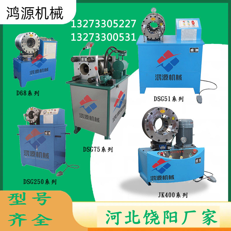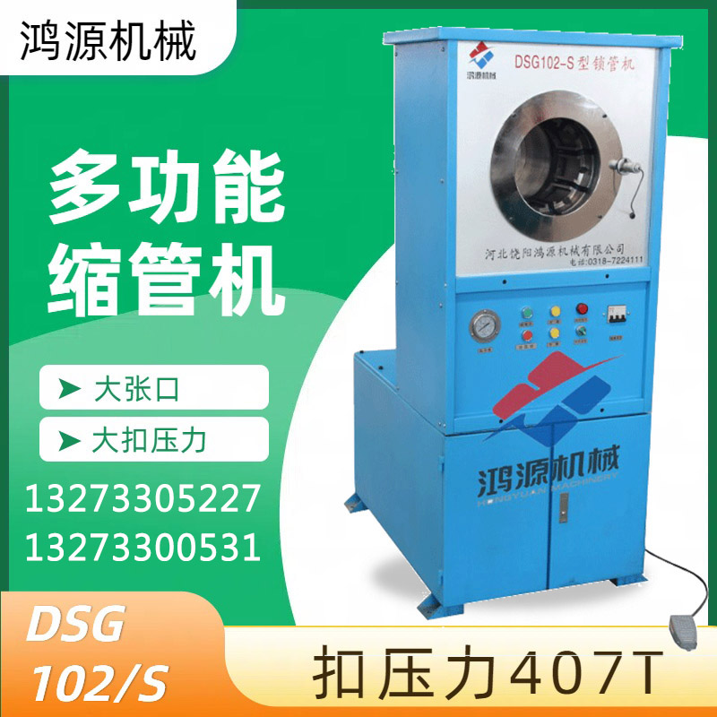 我厂生产的DSG-102/S型锁管机适用于工农业和工程机械液压传动用高压胶管、纤维管、塑料管、复合管总成的扣压加工。采用NC控制,可点动、自动、半自动、延时保压、保压时间可调、多段扣压功能,油缸采用环形结构,可双向进料进行扣压,具有体积小、重量轻、功能多、开模快、易操作、好维修等优点。