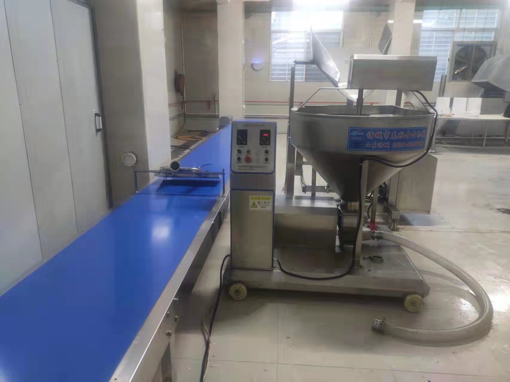 7、肉脯挤出机跟输送机搭配可实现肉脯厚度的任意控制。