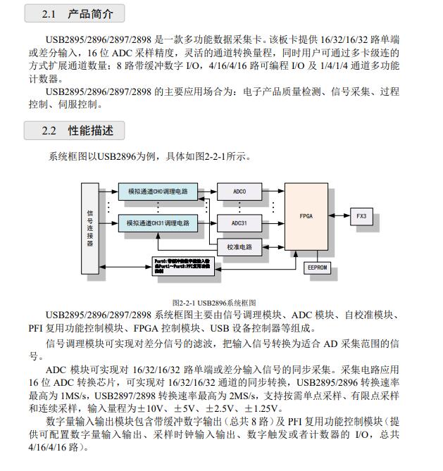 输入通道 | 32路单端/差分同步采集(USB2896/2898); 16路单端/差分同步采集(USB2895/2897) | |