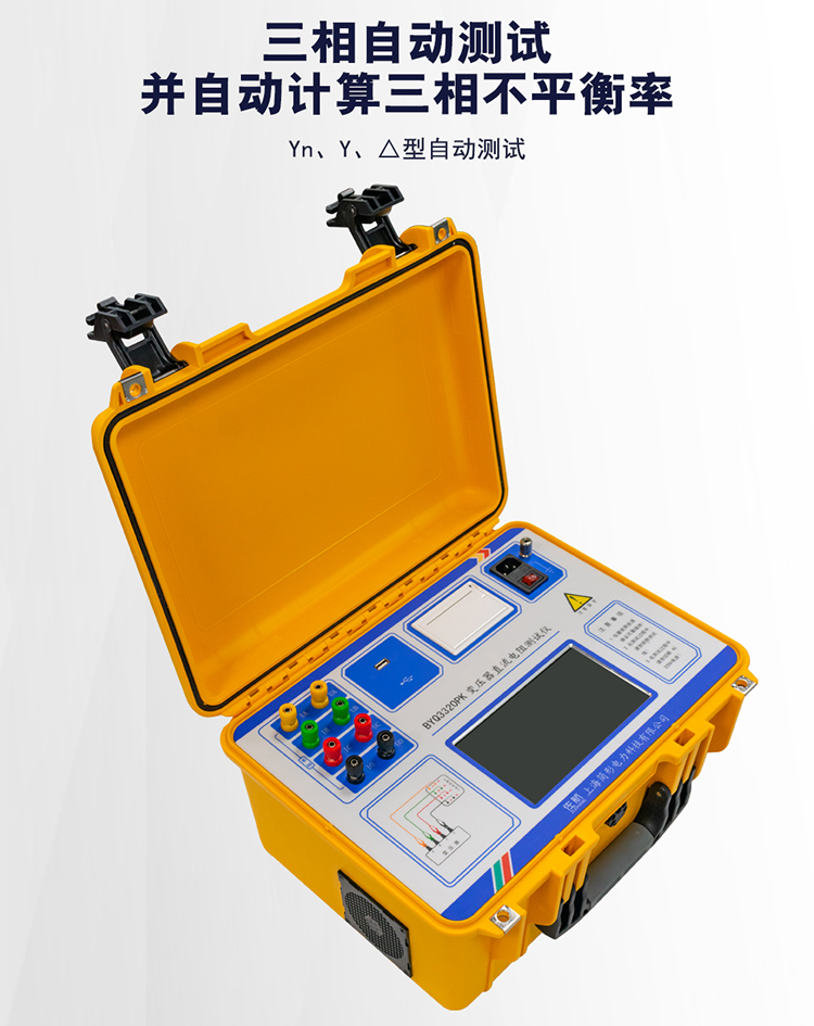 1)对于Yn型、Y型和△型绕组均可采用三相测量方式进行测试,并计算出三相不平衡率。