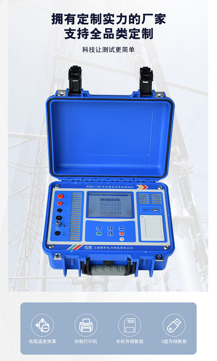 佐航BYQ3111PK变压器直流电阻测试仪是一款创新型产品,内置大容量锂电池,产品体积小巧,便于携带。产品不仅适合变压器、互感器、电抗器等感性试品的测量, 而且适合铜排、导线、开关触点等阻性试品的测量,仪表测试速度快、准确度高。