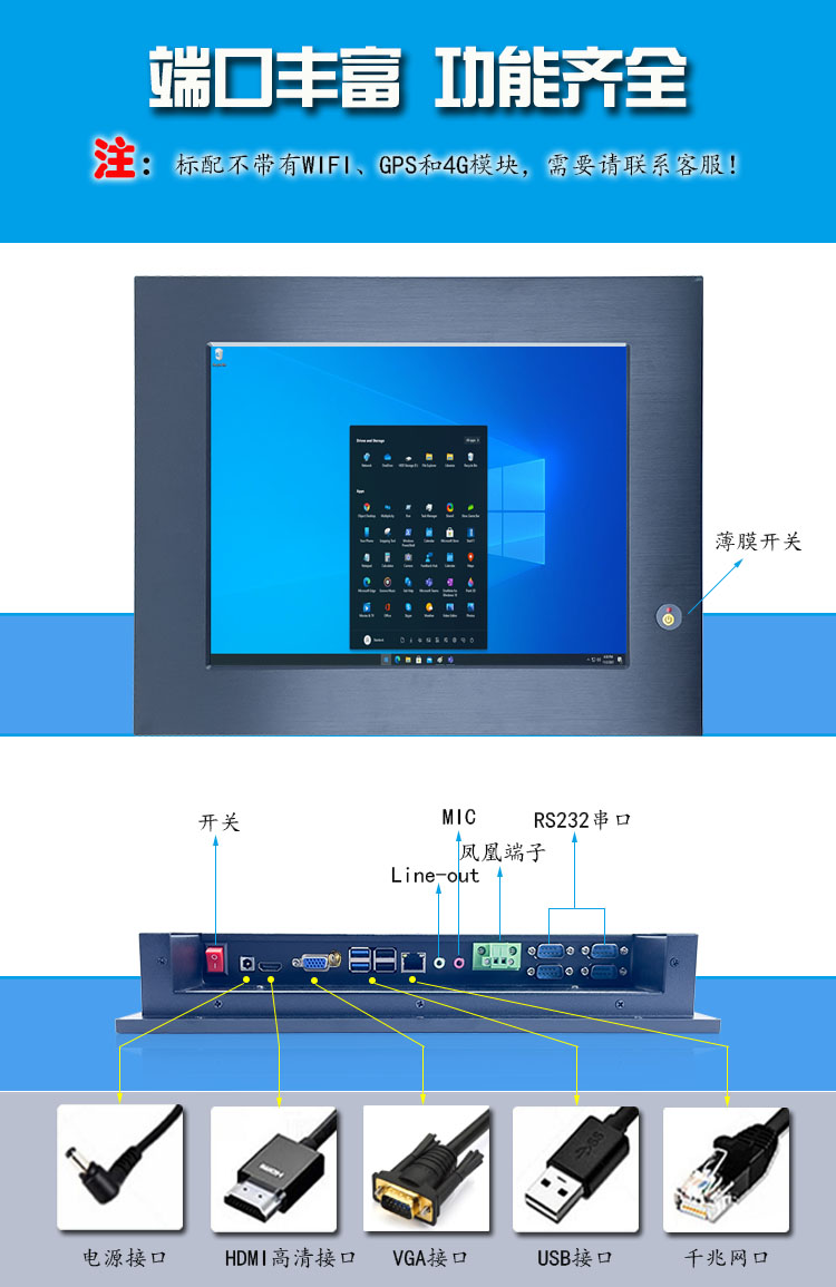 5.电脑供电宽压在9V-30V之间,出厂配有12V5A电源适配器.