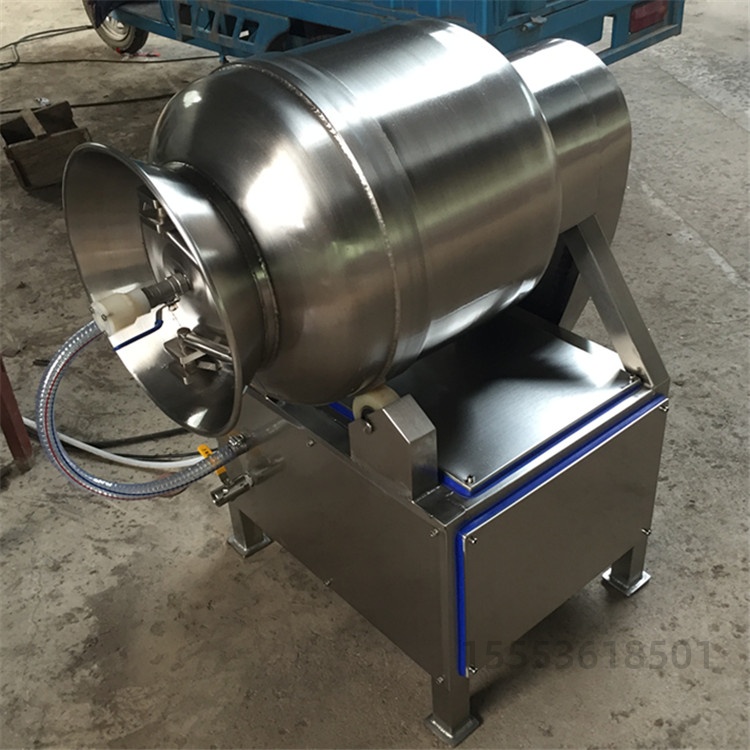 真空滚揉机主要包括料斗、机座、滚筒、真空系统、水循环系统、控制系统等组成部分。其中滚筒是其最为关键的部分。(食品加工机械厂家Tel:155*5361-8501)