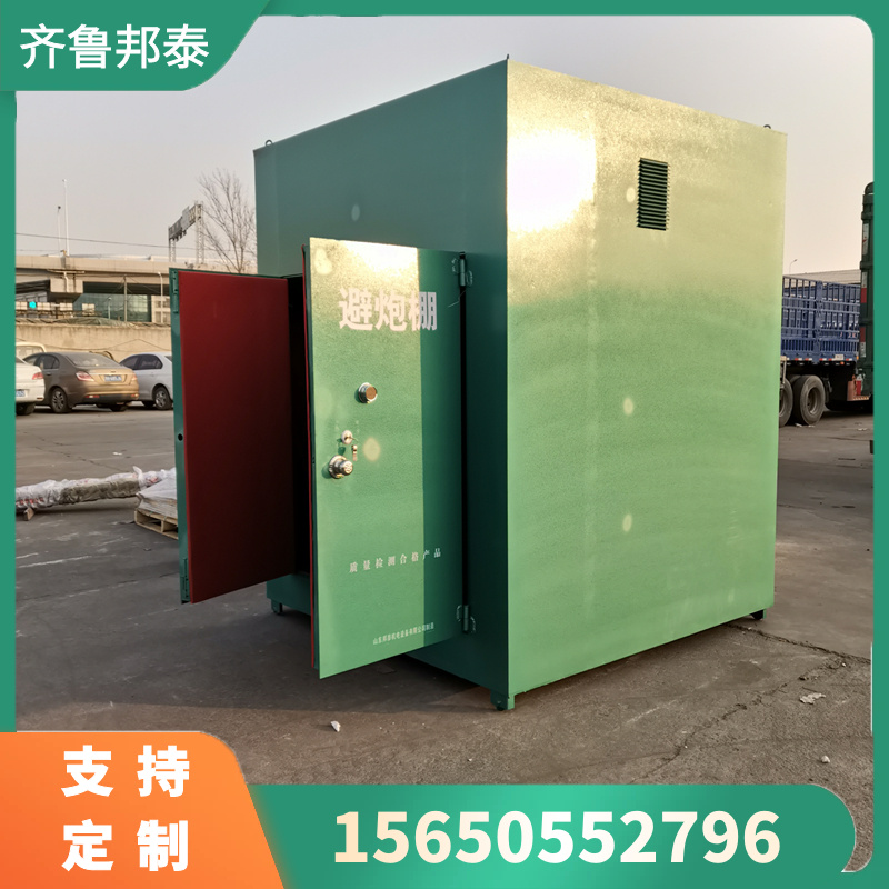 2、避炮棚整体钢板厚度为1cm,采用双开门设计,内外都可以开锁。