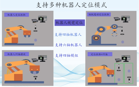 算法功能 | 机械手、机器人定位引导(轮廓,圆心,边缘等) 外观缺陷(有无,辨色,印刷,纹理,划痕等) 读码识别(二维码,一维码,OCR) 几何测量(点,线,圆之间宽度,距离测量) 带命令文的逻辑运算计算器 |
