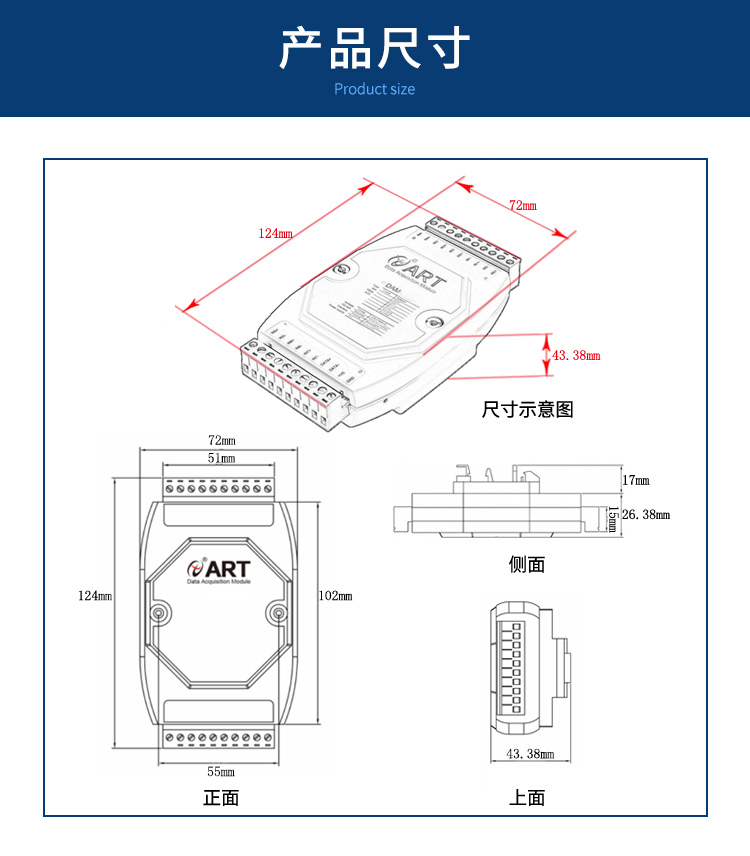 DAM-3047H为热电阻采集模块,带有7路16位热电阻采集,RS485通讯接口,带有标准ModbusRTU协议。(购买前请确定所需量程,固定量程出货)
