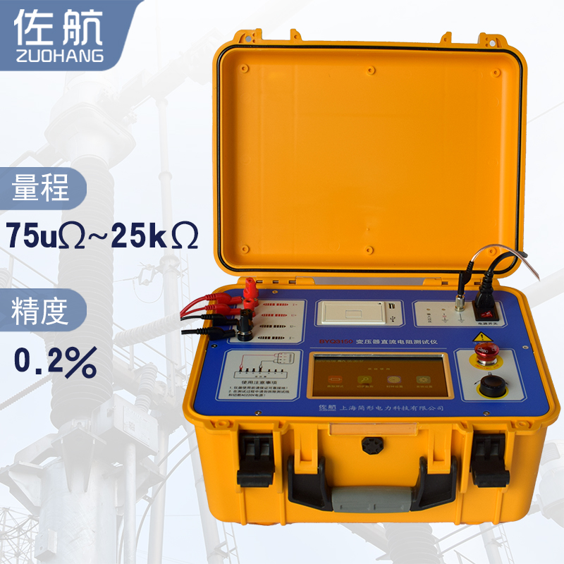 佐航 BYQ3150 变压器直流电阻测试仪,量程范围广75uΩ ~25kΩ,准确度高?(读数?0.2% 2字),屏幕采用真彩色大屏幕高分辨率液晶显示屏,触控加飞梭旋钮操作,方便现场使用。具有中文菜单提示功能,操作简便直观,测试速度快。