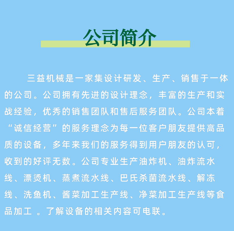 诸城市三益工业装备有限公司位于山东省,是一家专注于食品机械领域的生产厂家。公司拥有丰富的行业经验以及一支专业的技术团队,致力于为客户提供高品质、安全可靠的商用油炸设备。凭借对客户需求的深入理解,三益工业不断优化产品设计,技术创新,确保其在市场上的竞争力。