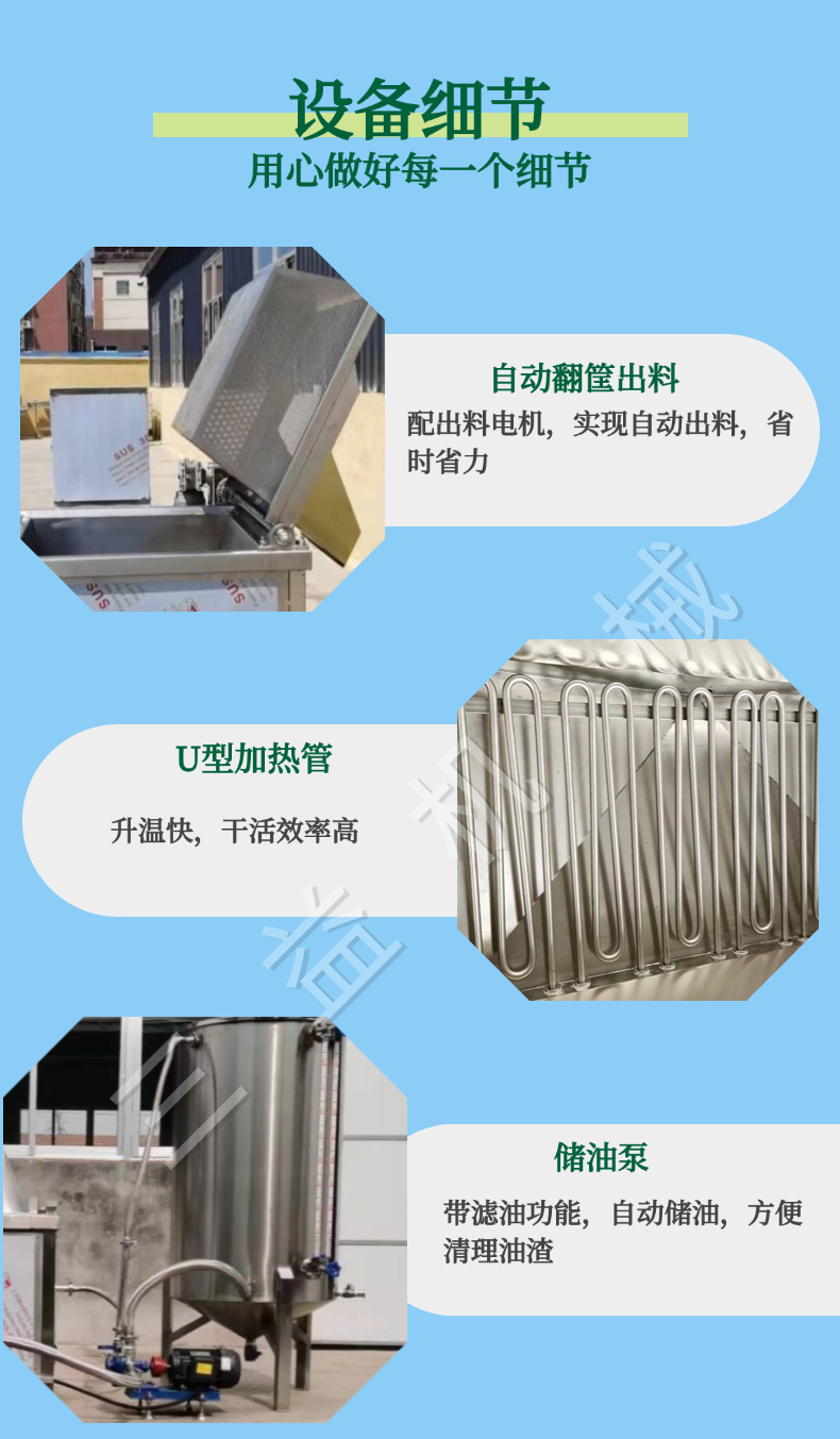 高效能:设备采用先进的油炸技术,能够迅速提升油温,缩短油炸时间,提高工作效率。