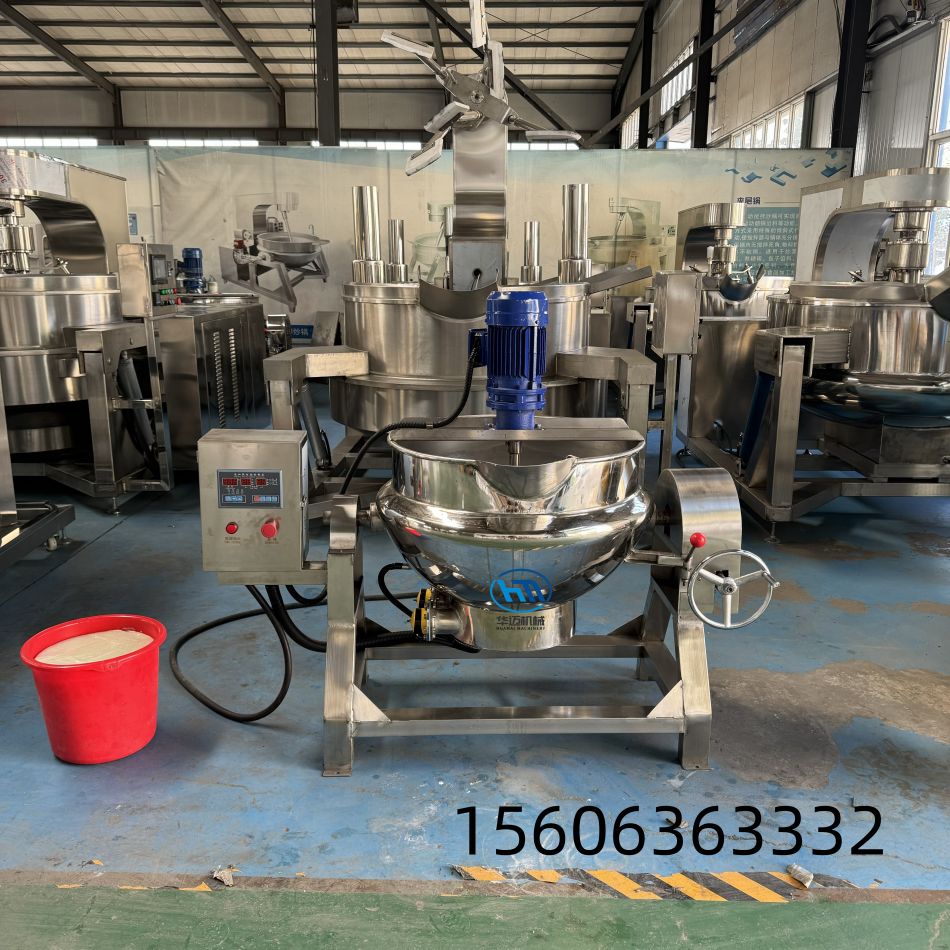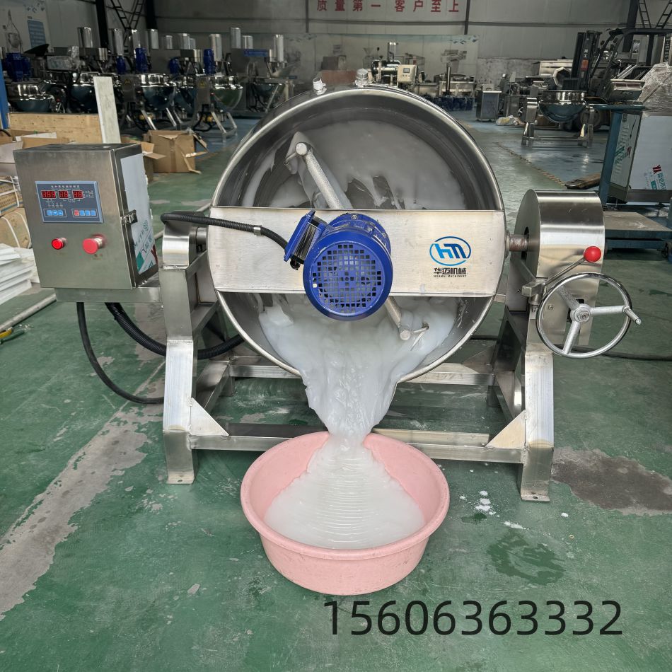 100L电加热可倾式带搅拌夹层锅 自动搅拌凉粉锅 牛肉酱料搅拌夹层锅