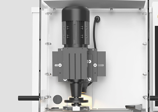 防爆透明窗设计:工作区域采用安全可靠的防爆透明窗设计。在安全罩关闭之前机器无法启动,只有在停止运行之后才能打开该安全罩。