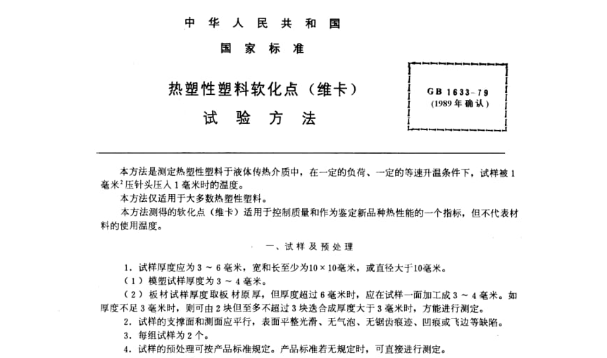 GB/T 1633《热塑 性塑料软化温度(VST)的测定》