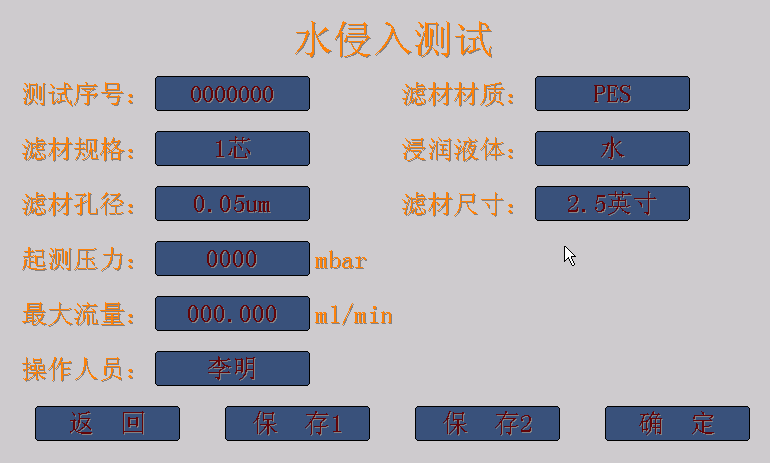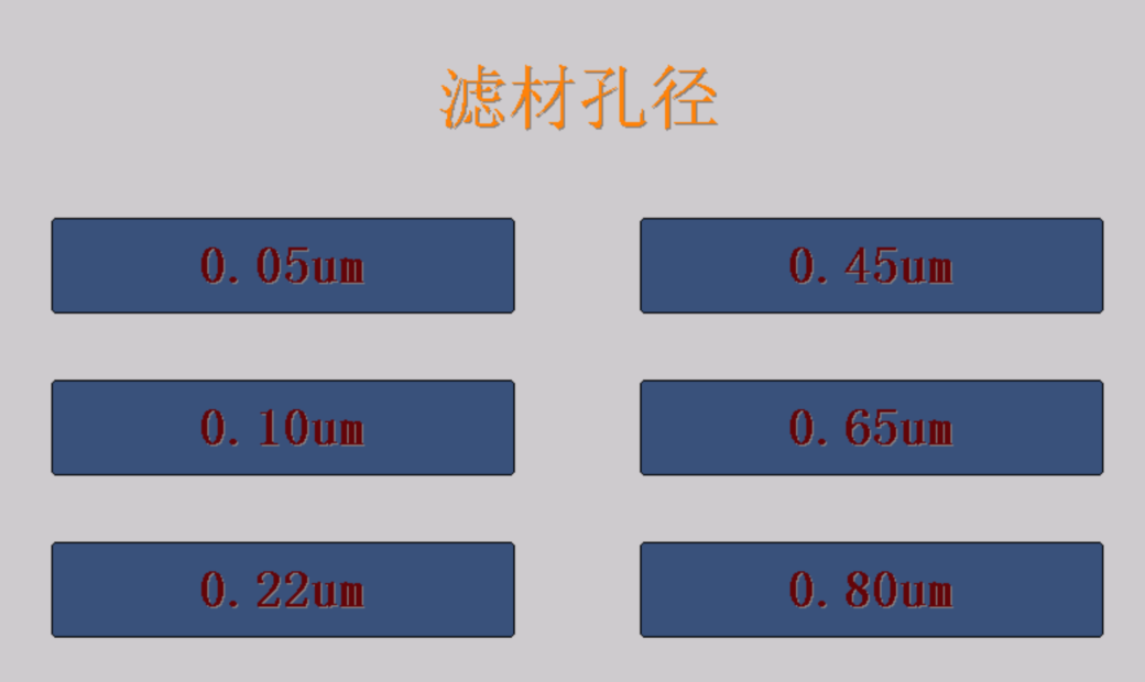 在人机界面方面做了大量工作,首先每个工作界面的下边都有醒目的操作提示,用户可根据提示内容完成所有操作项目。其次,仪器设计了“最后测试条件自动保存”功能,这样,如果用户每次测试的都是相同规格的滤器,就可以使用“一键到底”(即在选择某一项测试功能后,一直按下仪器面板上的确定键,仪器就能按照上次测试时输入的参数进行检测)实现过滤器完整性测试,大大简化了工作人员的操作程序。