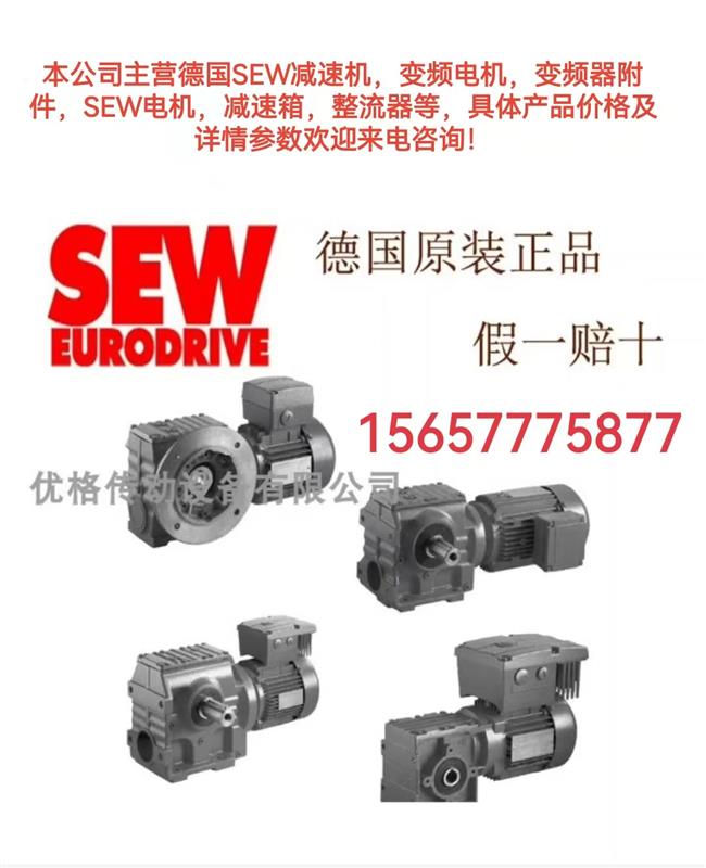温州优格传动机械设备有限公司专营德国SEW减速机(德国赛威减速机)全系列产品:SEW减速机、SEW减速机销售、德国SEW减速机代理、SEW电机、德国SEW电机、SEW减速电机、SEW变频器、SEW编码器、SEW制动器、SEW制动电阻、SEW操作面板、SEW电源滤波扼流圈、SEW电源滤波器、SEW通讯模块、SEW通讯模块、SEW编码器卡DER11B、SEW总线卡DFP21B、SEW编码器通讯线、SEW型号转换器UWS11A、SEW通讯电缆USB11A等产品。