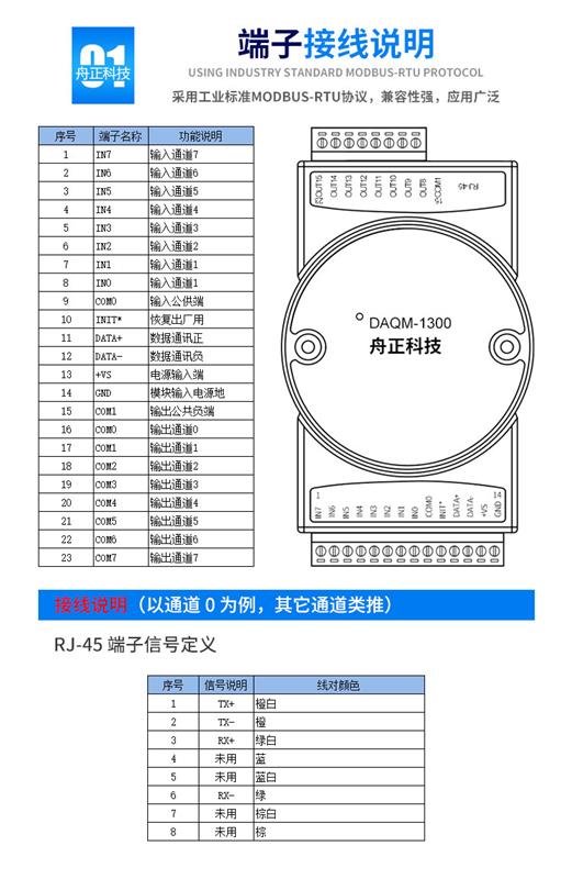 DAQM-1300 采用标准 ModbusTCP 协议,支持多种组态软件、PLC 系统。用于各种开关量信号采集。产品工作电压 DC9-36V,标准 35mm U 型导轨安装,通讯口及输入通道全部使用光电隔离,隔离电压达 2500V,同时通讯口有防静电防浪涌设计,以太网接口采用 10/100Mbps 自适应兼容各种PLC、触摸屏及组态系统。