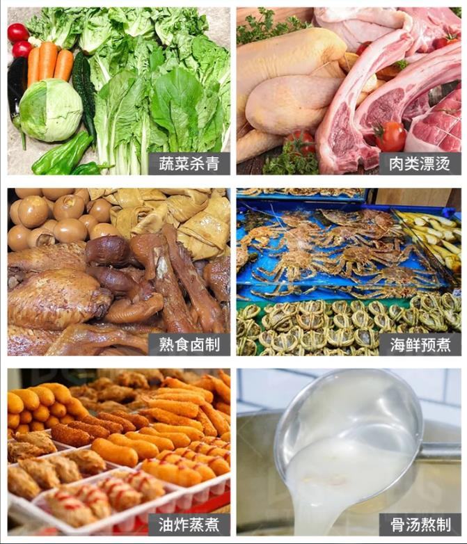 1.食品加工行业:广泛应用于卤制食品的生产,如卤鸡爪、鸭脖、牛肉、猪蹄等,也适用于肉类油炸、花生油炸等食品加工环节。