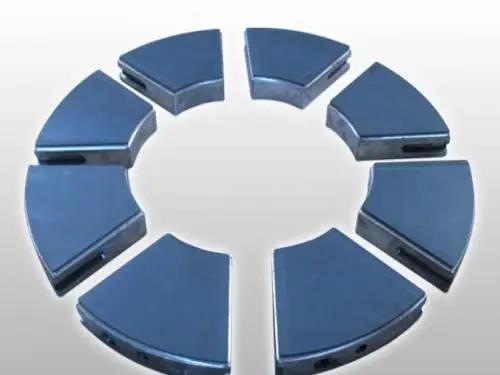 水轮机的巴氏合金推力瓦轴承,也叫推力轴承,是用于平衡转子的轴向推力的重要部件。它的作用是确定转子的膨胀死点,确保动静件之间的轴向间隙在设计范围内。推力瓦广泛应用于汽轮机、水轮机、水泵等设备,以及水轮发电机镜板的加工和旧镜板的研磨加工。