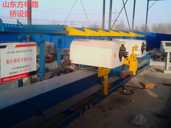 数控钢筋弯曲机是山东方特路桥设备有限公司专为高层建筑、高速公路、高速铁路、大型桥梁等工程混凝土结构内主骨架钢筋的弯曲加工高性能产品,最大能加工直径φ36mm的高强度螺纹钢。本机特点是中间有一个钢筋加紧机构,有两个机头在特定的轨道上可以自由移动弯曲。具备在一个工作单元内同时进行