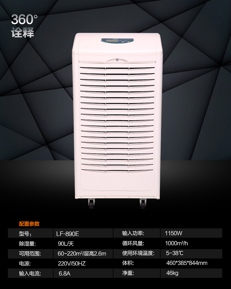 工业除湿机按照除湿技术可以分为转轮除湿机、冷冻式除湿机,除了在一些需要很低的空气湿度的特别场合使用转轮除湿机外,基本上用的是冷冻式除湿机。LF-890E系列冷冻式除湿机的原理简单的说就是风机把空气带入机体内部,通过蒸发器跟冷凝器后,空气中的水汽被冷凝成水排放出来,同时吹出的就是干燥的空气,周而复始就可以达到降低空气的目的。现在工业生产中为了控制空气湿度都会使用除湿机,车间、仓库都可以看到它的身影,那么除湿机到底发挥了哪些作用呢?首先就是防霉,这个作用主要是在食品厂跟制药厂中,还有服装、皮草等行业,除湿机通过控制空气湿度,可以不让食品、药品受潮,然后空气湿度降低后,还可以抑制微生物的繁殖传播,从这两个方面下手,就可以防范食品、药品以及服装发霉,保证产品质量不受影响。