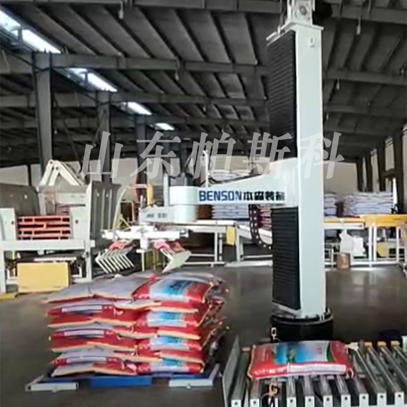 码垛机器人编织袋码垛机 自动堆垛 缠绕 包装生产线主要特征: