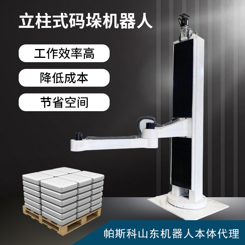 山东帕斯科主要生产码垛机器人、包装码垛线、全自动包装机、自动拆垛机、自动装箱码垛系统、机器人装卸车、全自动拆包机、自动立体库、智能AGV小车、智能化仓库搬运设备等机械设备,对行业所需产品实行定制、研发、设计、生产安装、调试、物联一条线服务。啤酒箱立柱码垛机器人主要用于生产线上的后续码垛过程,用来代替人工搬运,可根据所设置的程序24小时不间断运转,提高生产线生产效率,降低生产成本,为企业生产的精细数字化做出贡献。啤酒箱立柱码垛机器人采用智能化管理系统,具有性能可靠,故障率低,维修方便等特点,机身小巧耐用,能够设置在狭窄的空间内,即可有效的运用,为厂房节约设备占用面积。