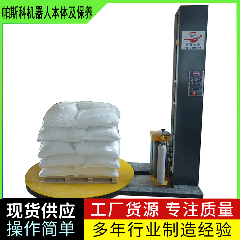 缠绕膜打包机的优点:可任意启动、停止、定位;可任意进行局部加强缠绕;具有超载、过流等保护功能,安全可靠;设计简洁明了,维护极方便;适应性强,高效低耗,减轻劳动强度;对包装物能起到防尘、防潮、保洁的作用;减少包装物的表面擦伤,提高表面质量,使包装更牢固;采用PLC自动控制,性能可靠,可根据需要变更缠绕方式和次数;转台自动复位,确保货物进出定位精确;可自动上膜、断膜、故障报警停机;可根据客户需要,配套光电控头,自动测高;可根据需要设计制造配套生产流水线。