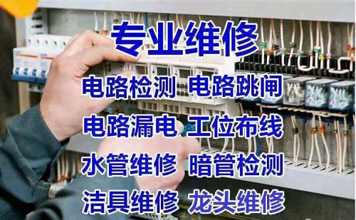 专业电工/上门维修家庭电路、漏电保护、换老式刀闸,电路闸、电路改造或安装:家庭电源线路故障检测;开关灯具维修 或安装,随叫随到 业务主要有:室内电源线路明线,暗线的安装或改装;线路故障的维修如:电源开关跳闸,灯饰不亮,插座没电等;所有的灯饰的安装从普通的日光灯到各种造型的吊灯水晶灯,壁灯专做家装商装照明电布线,穿线,电视线,电话线,网线明暗线安装布线,安装开关插座,安装配电箱,安装各种大小灯具;吊灯,射灯,筒灯,壁灯,镜前灯,水晶灯,吸顶灯,日光灯,遥控灯,声控灯,灯带,LED等,维修不亮故障灯具,故障电源电路急修排除;短路跳闸,合不上闸,接头松动打火,电线漏电,空气开关总跳,电灯不亮,插座无电,更换电闸开关等