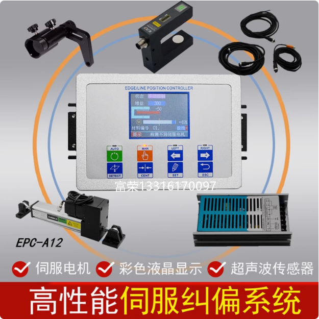 EPC-A12伺服纠偏系统能连接多种不同类型的纠偏传感器和推动器,支持EPC跟边、LPC跟线、CPC对中、SPS错位(蛇形)等多种纠偏方式,使用彩色触控大屏幕作为人机界面,操作方便、美观大方,带有设置向导和在线帮助系统,就算第一次使用本系统,也能轻松完成基本设置。