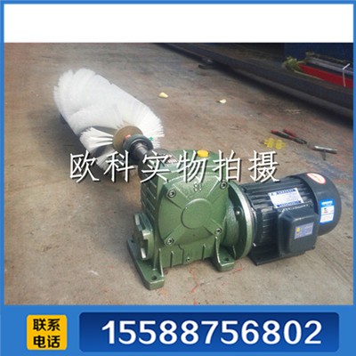 电动滚刷清扫器一般由电动机,减速机,万向节,尼龙滚刷,支架以及辅助备件组成