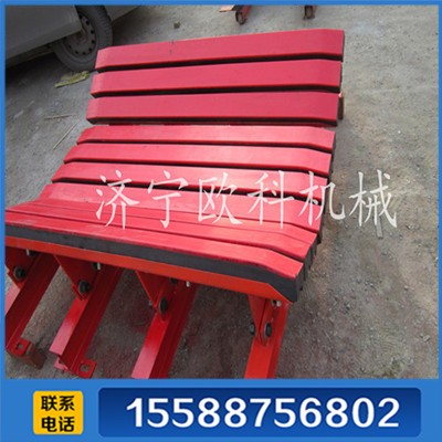 输送机缓冲床直接承受大块物料的硬冲击,缓冲床上缓冲条的使用寿命和被冲击皮带的寿命大大降低,同时缓冲条的固由于冲击力大,其使用寿命短、材料费用投入高、维护难度大,而且缓冲床出现故障后,影响正常生产。缓冲床承受大块物料冲击时,会将冲击力直接传到皮带机机架,导致CZTHCC型组合缓冲床机架寿命大大降低。由于硬冲击,缓冲不足,容易导致物料崩出,造成安全隐患并且污染现场环境。
