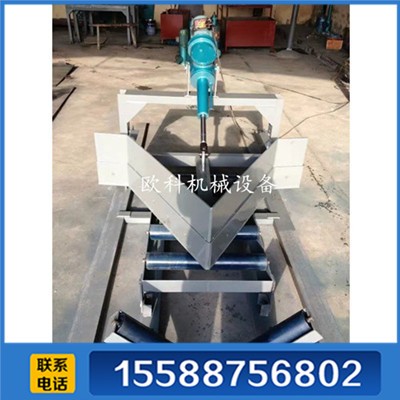 6)星型卸料器可变槽角托辊组:胶带防偏及过渡装置。在小车带动下以实现卸料器前后自成与胶带机吻合的槽角,防止胶带跑偏。