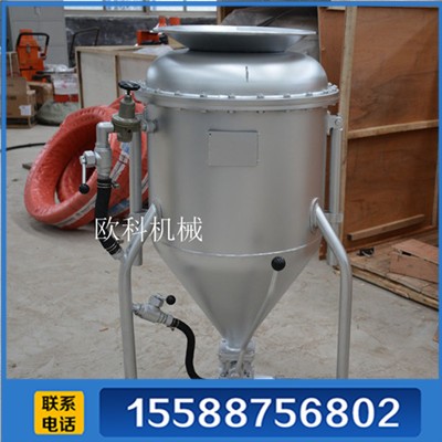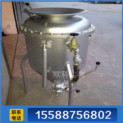 (1)上药至风口盖约30~40mm的地方,约100kg。(2)将封口平盖倾斜放入药桶内,顺手提起,依次打开进气阀和封口平盖并紧贴封头;(3)按需要通过调压阀4调节装药压力。顺号旋转手柄,桶内压力将会减小。(4)拔管者先将起爆体插入炮孔底部,再将输药软管放进距起爆体350mm左右的距离,向操作者发出给药的通知。(5)操作者听到准备给药的通知后,打开吹风 阀并立即关闭,紧接着全开球排料阀并缓慢摇动搅拌装置,拔管者通过听炸药出口处传来的声音,按均匀的速度进行拔管。 (6)拔管者根据炮孔所留的充填长度,发出停止给药的通知,操作者立即关闭球型排药阀并停止搅拌。此时,时开时闭吹风阀两次,把输药软管的余药吹入炮孔。到此,完成一炮孔的装药。 (7)再依次向其他的炮孔进行装药,按照4~6项动作,直到桶内炸药装完。(8)关闭进风阀打开放气阀放出桶内余气,再向桶内上药,继续向炮孔装药直至装完所有炮孔。(9)炮孔全部装完,药桶内如果还有炸药,就打开球型排药阀将余药吹入塑料袋内。