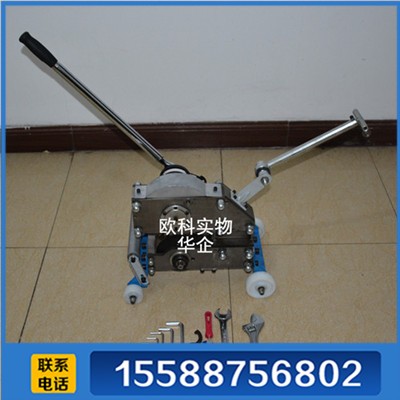 6.钢丝绳芯皮带切割机切割过程中如遇到咬死等问题时,可以反向退回,请重置减速器方向拨杆并将棘轮扳手拨环反向旋转急顺时针方向旋转。