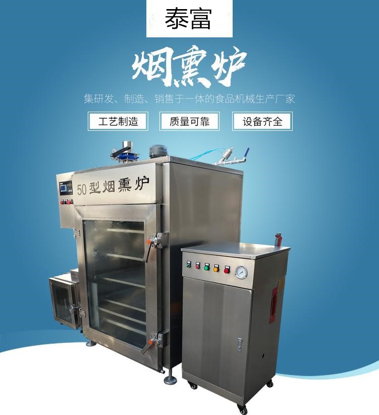 诸城泰富机械生产的烟熏炉广泛用于各种烤肠、腊肉、香肠、鸡鸭类、鱼类、豆腐干类的烟熏加工,欢迎有需求的客户来电咨询,我司将以最优质的服务为您提供最好的产品。