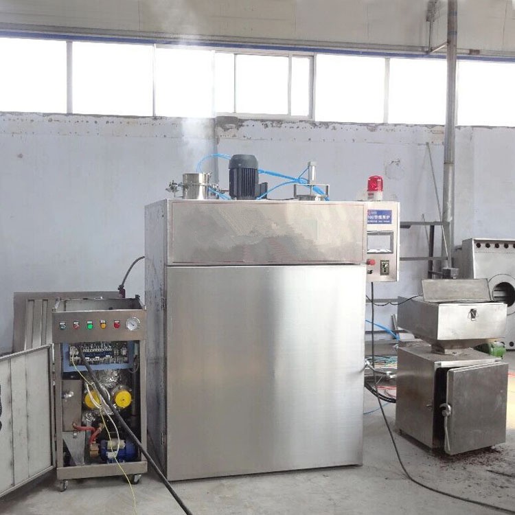 7、大视窗的人机界面,生动直观地显示设备运行状态,可在运行中随时调整时间、温度、湿度、排风大小等状态参数,操作非常简单。具有优异的发烟及循环系统,可使炉内的烟雾均匀分布,从而使肉制品着色均匀,色泽美观,保证产品具有较高的出品率。